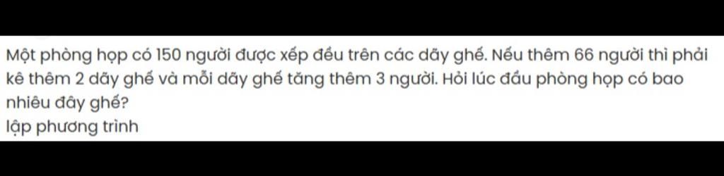 Giải thích các bước giải: Gọi dãy ghế ban đầu là X[dãy] [đk:X thuộc N*]