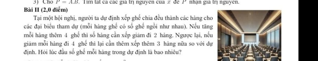 Vậy số ghế mỗi hàng trong dự định là `20`