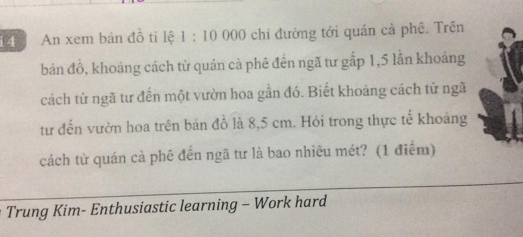 Khoảng cách từ quán cà phê đến ngã tư trong thực tế là: