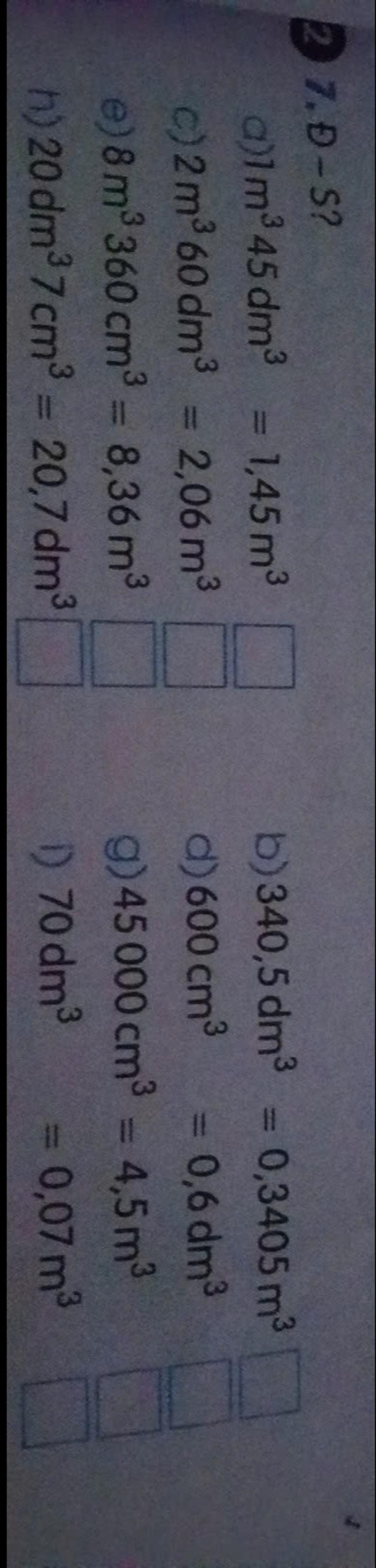 h) 20$dm^{3}$ 7$cm^{3}$ = 20,007 $dm^{3}$ NÊN h) Sai