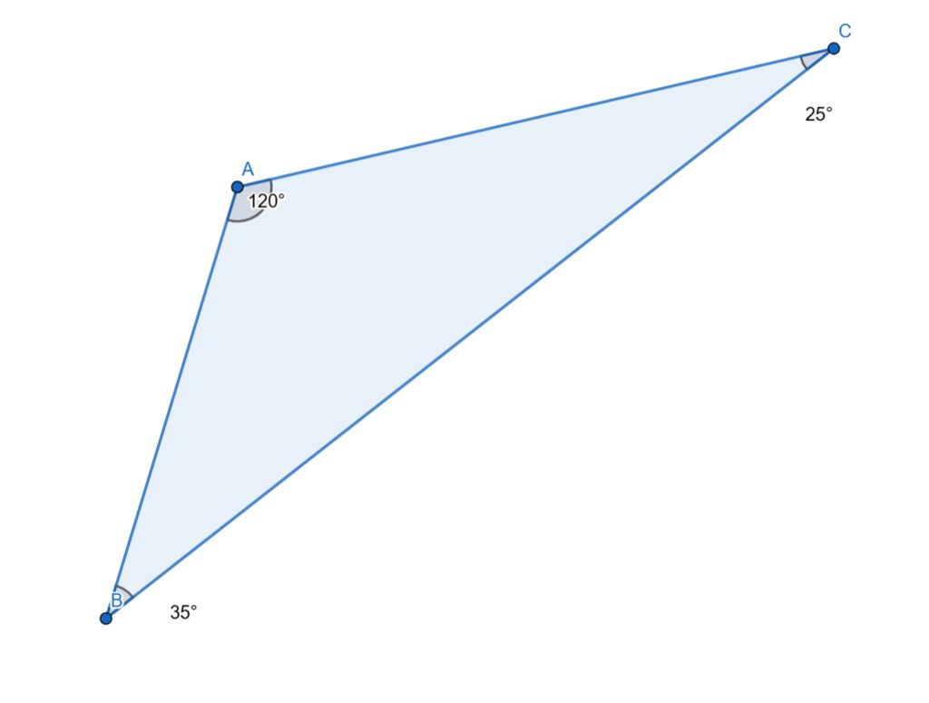 ` 120^o + 35^o + ∠C = 180^o ( thay số ) `
