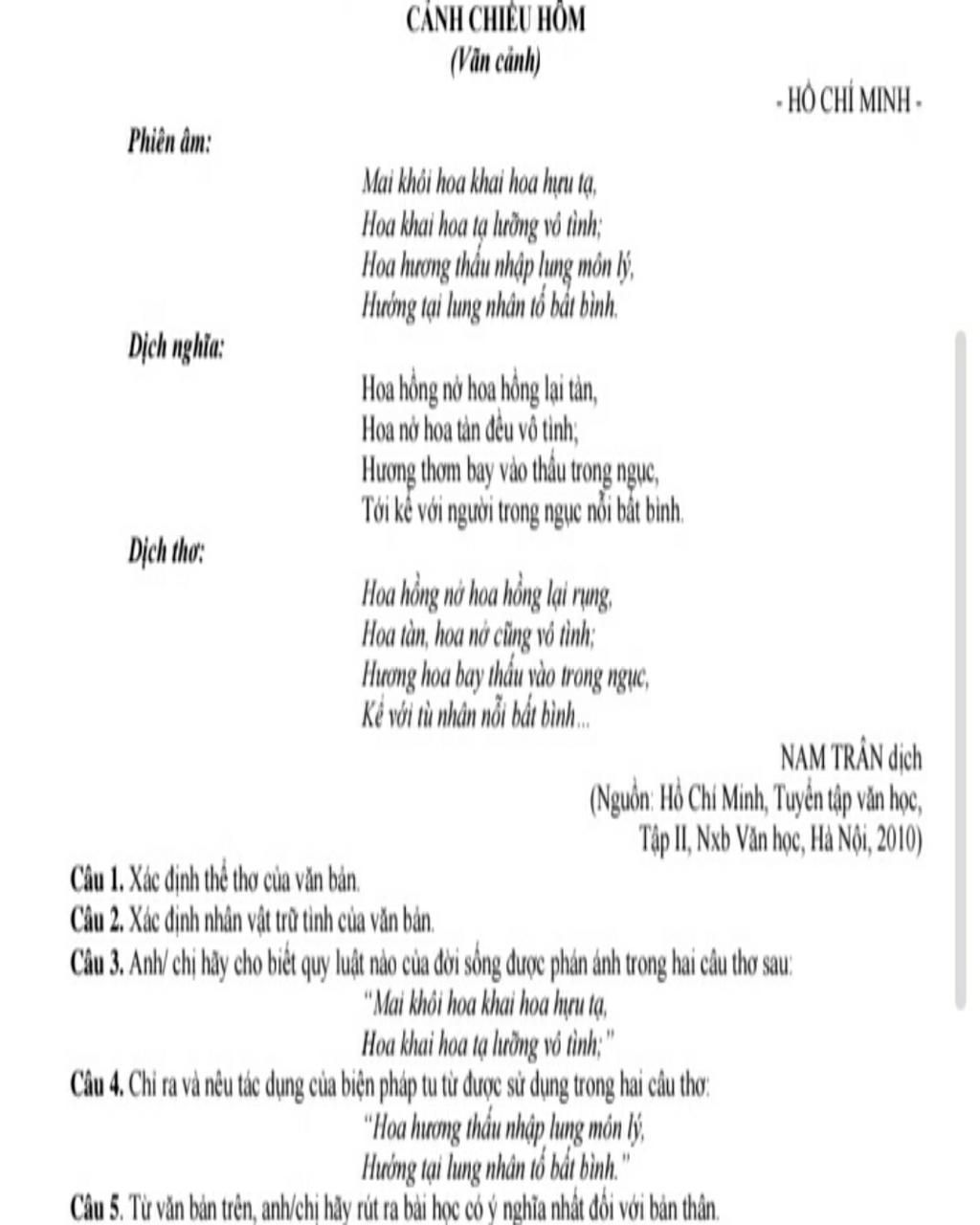 BPTT được sử dụng trong 2 câu thơ "Hoa hương thấu nhập lung môn lý hướng tại lung nhân tố bắt bình" là nhân hoá khi hương hoa được miêu tả như có khả năng bay vào trong ngục thể hiện sự kết nối giữa cái đẹp và nỗi khổ của con người đồng thời tạo ra cảm giác gần gũi ấm áp giữa những điều tăm tối.