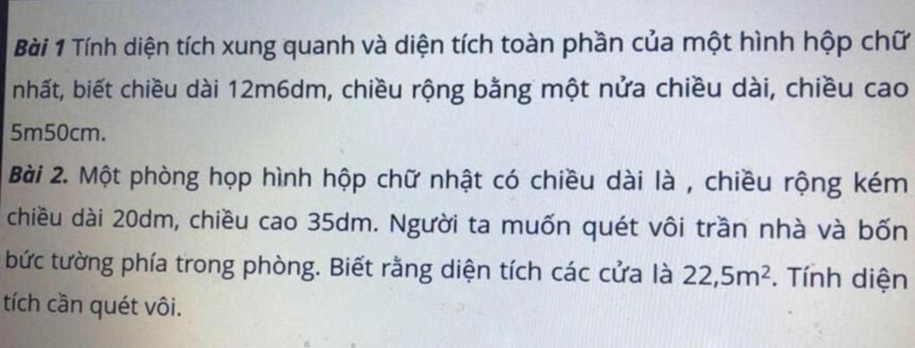 Đổi: `20dm = 2m ; 35dm = 3,5m`