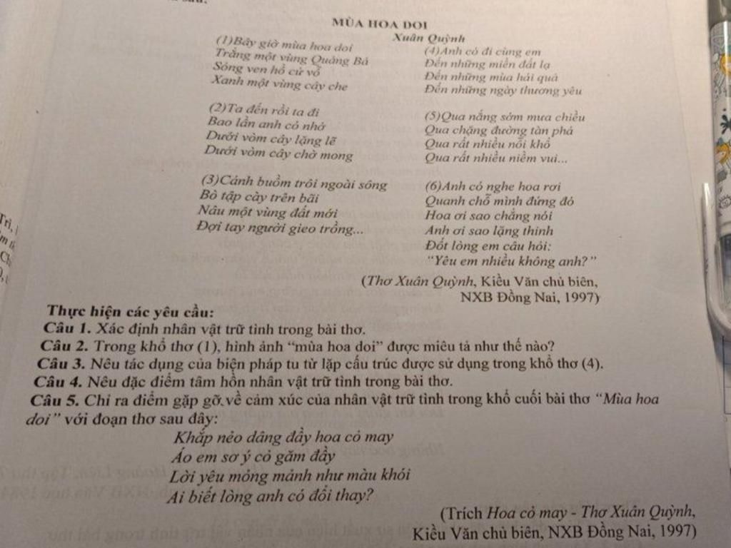 5. Cuối bài thơ, cảm xúc cảu nhân vật trữ tình thể hiện tình cảm còn lưu luyến với hoa cỏ may và tiếc nuối vì tình cảm nửa vời của lời yêu và tự đặt câu hỏi về tình cảm ấy.