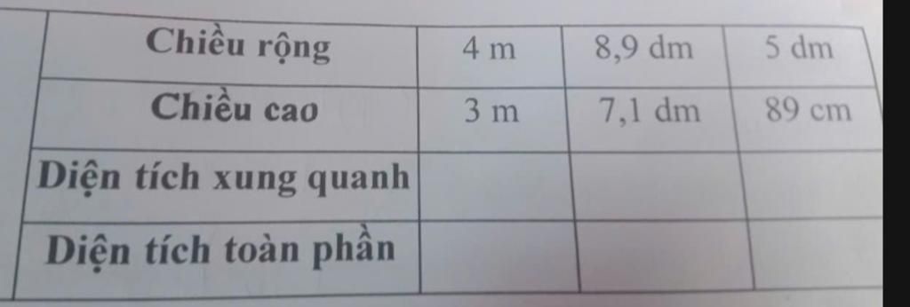 - Xét hình hộp chữ nhật có chiều dài là 1 m, chiều rộng là 5 dm và chiều cao là 89 cm