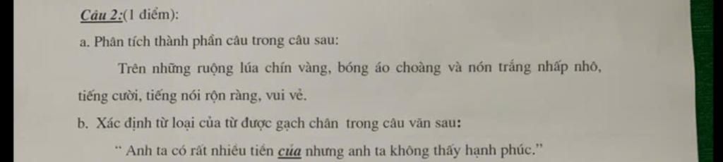 b. Từ "của" trong câu văn trên là một danh từ vì "của" ở đây diễn tả tài sản, tiền bạc, của cải.