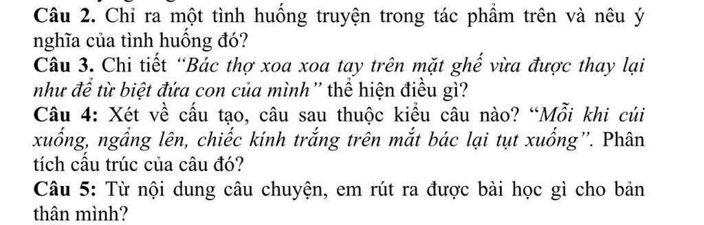 `-` Tình huống truyện: Sau khi bác thợ sửa xong chiếc ghế và đã ra về thì đột ngột quay lại chỉ để đóng lại cho hết đầu đinh