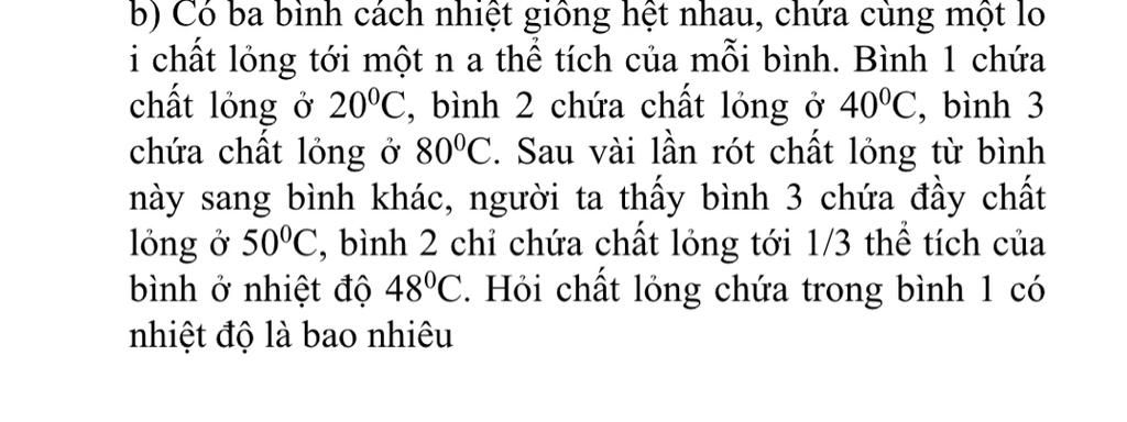 b) Có ba bình cách nhiệt giống hệt nhau, chứa cùng một lo
