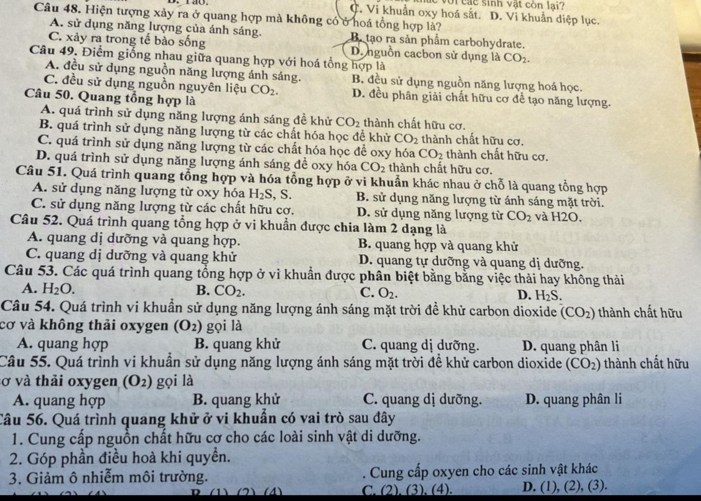 52.quang hợp là có thải O2 và quan khử là không thải O2