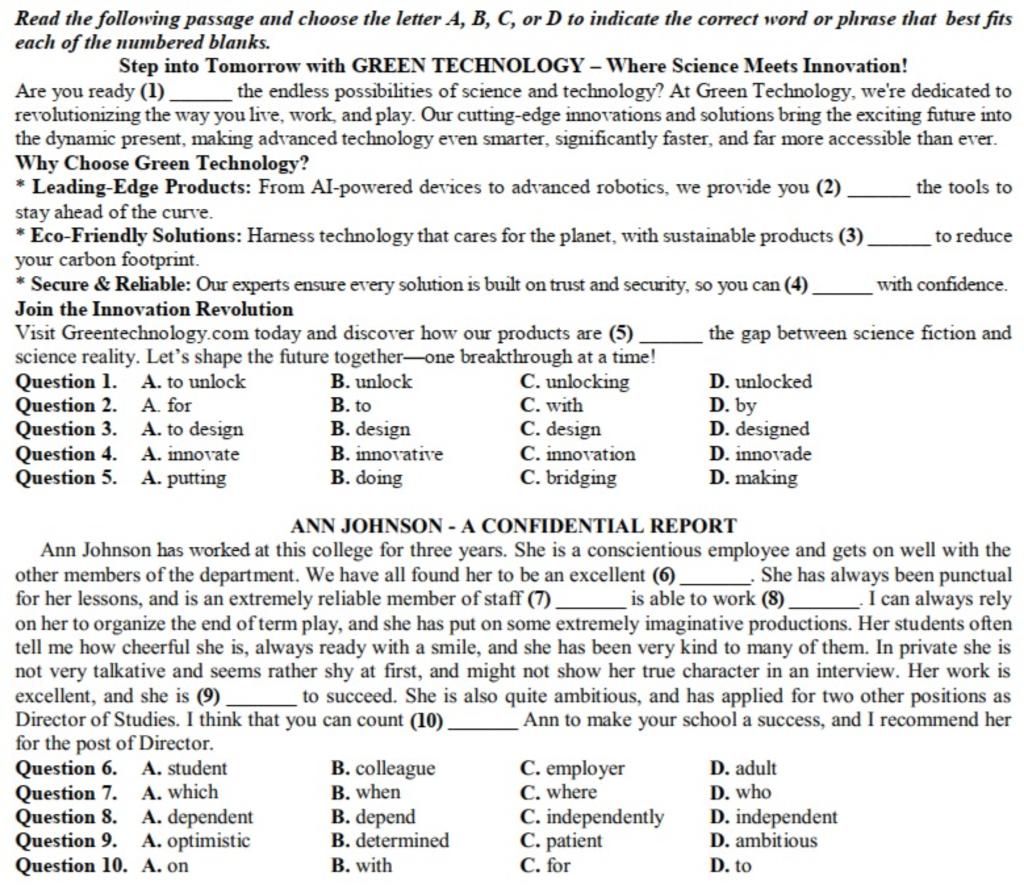 - 'Ann Johnson has worked at this college for three years. She is a conscientious employee and gets on well with the other members of the deparment' (Ann Johnson đã làm việc tại trường cao đẳng này trong ba năm. Cô ấy là một nhân viên tận tâm và hòa hợp với các thành viên khác trong khoa)
