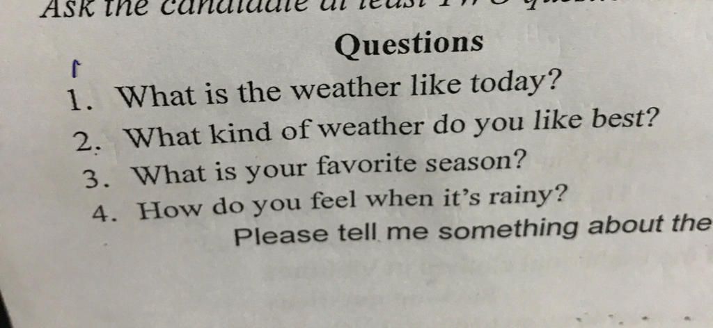 `2.` What kind of weather do you like best? (Bạn thích kiểu thời tiết nào nhất?)