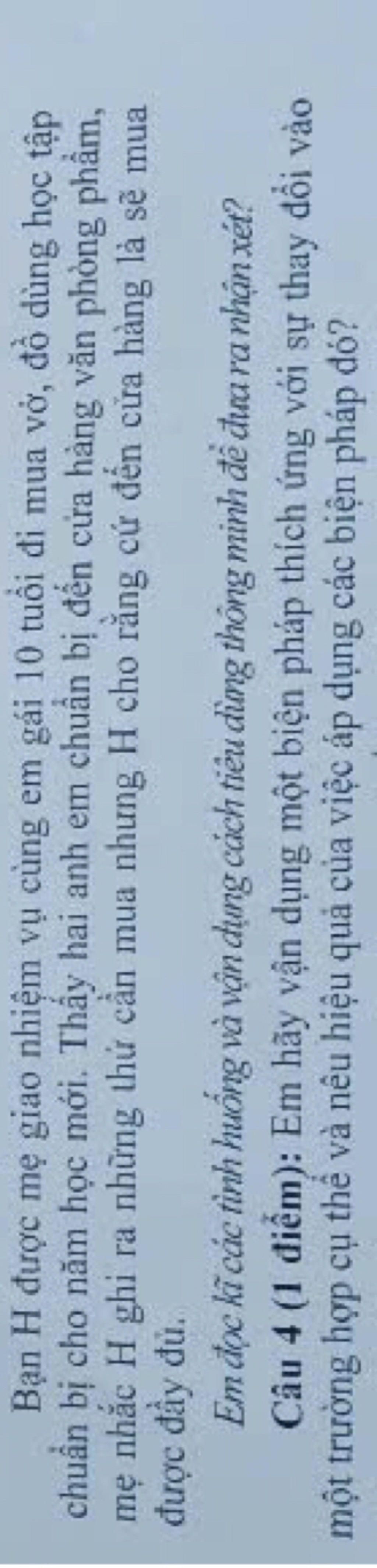 `\text{Th1:}` Bạn H được mẹ giao nhiệm vụ mua sắm đồ dùng học tập nhưng không lập danh sách trước mà nghĩ rằng cứ đến cửa hàng là sẽ mua đủ. Điều này có thể khiến H mua thừa hoặc thiếu những thứ cần thiết, tốn kém chi phí và mất thời gian.