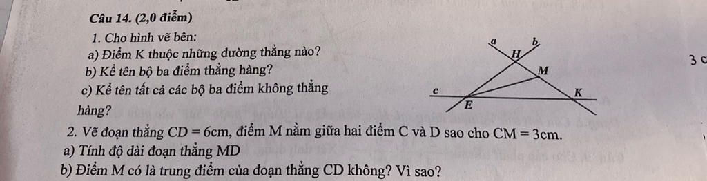 b. Vì M nằm ở giữa hai điểm C và D, có: MD = CM = 3 cm (CMT).