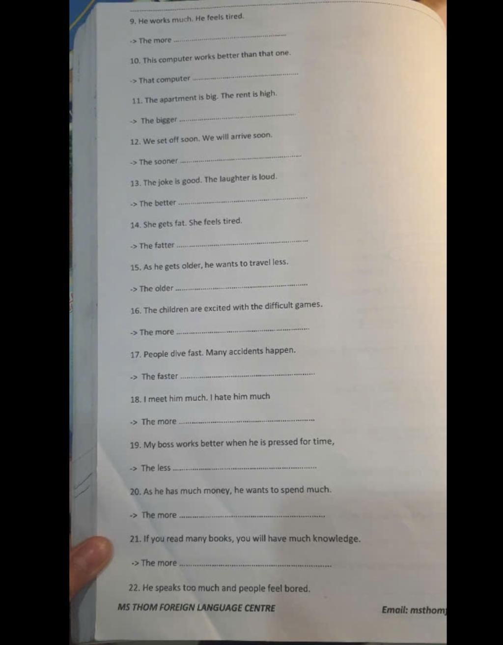 9. The more he works, the more tired he feels.