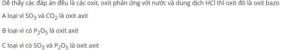 Câu `C` có `SO_3, P_2O_5` là oxide acid không có tính chất tác dụng với `HCl`