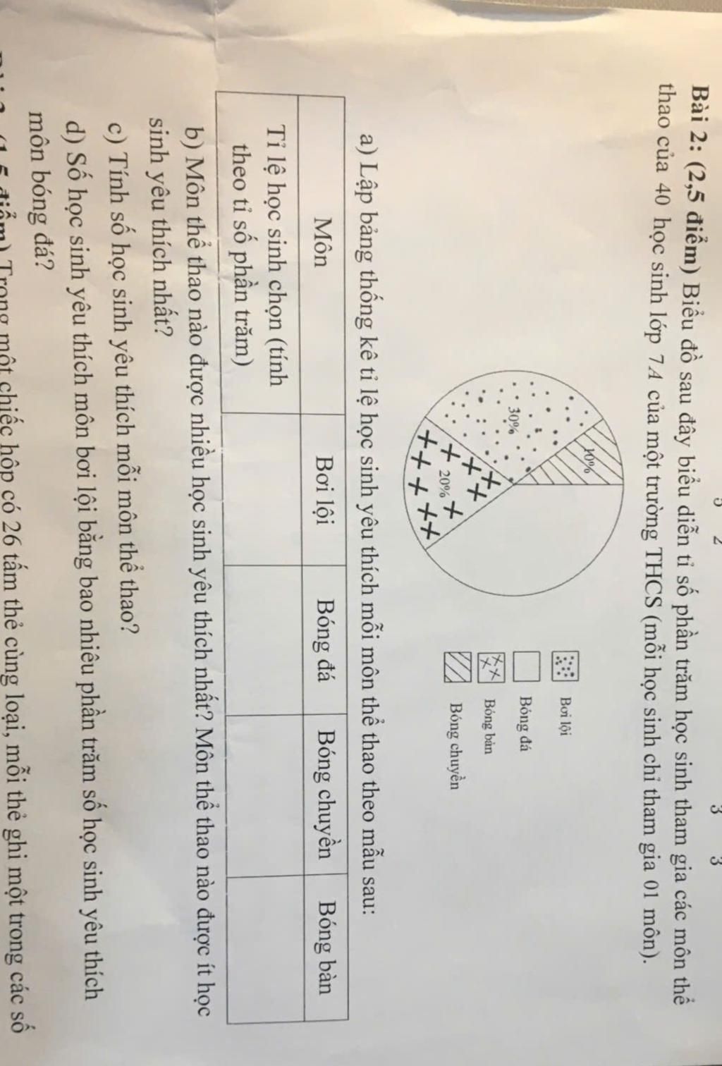 → Môn thể thao được ít học sinh yêu thích nhất là: bóng chuyền