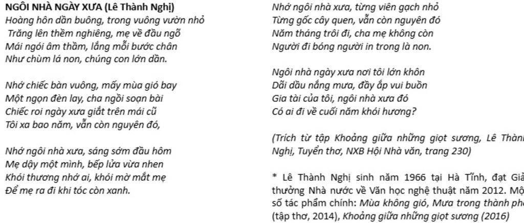 Viết đoạn văn nghị luận (khoảng 200 chữ) phân tích hình ảnh người cha, người mẹ hiện lên trong nỗi nhớ của nhân vật “tôi” trong bài thơ Ngôi nhà ngày xưa