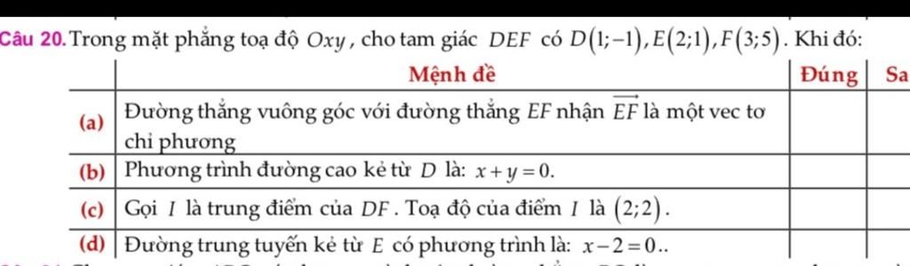 giúp mình 1 câu trắc nghiệm ĐÚNG SAI với ạ