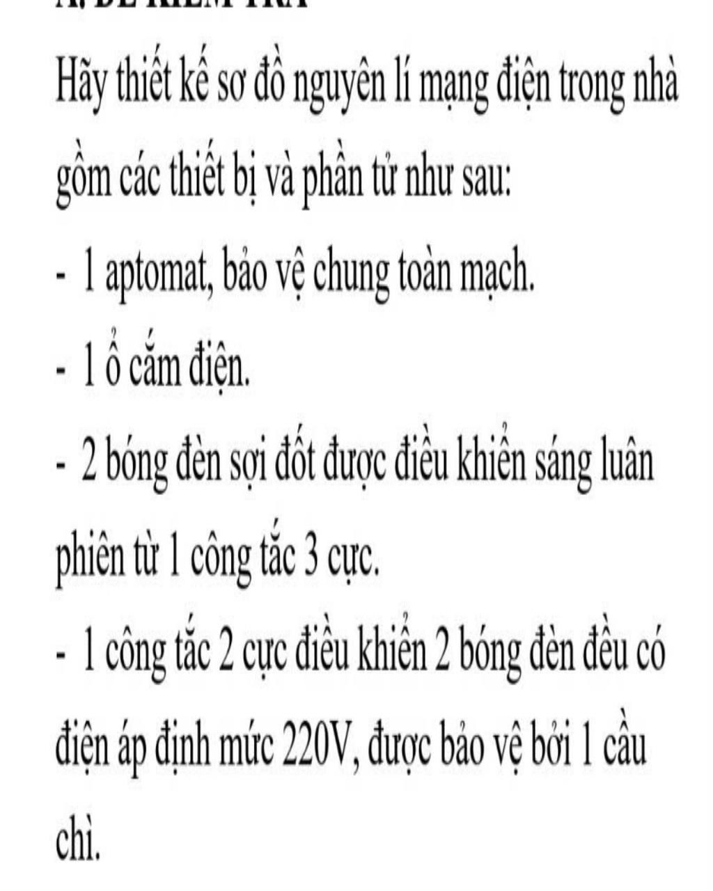 Hãy thiết kế sơ đồ nguyên lí mạng điện trong nhà