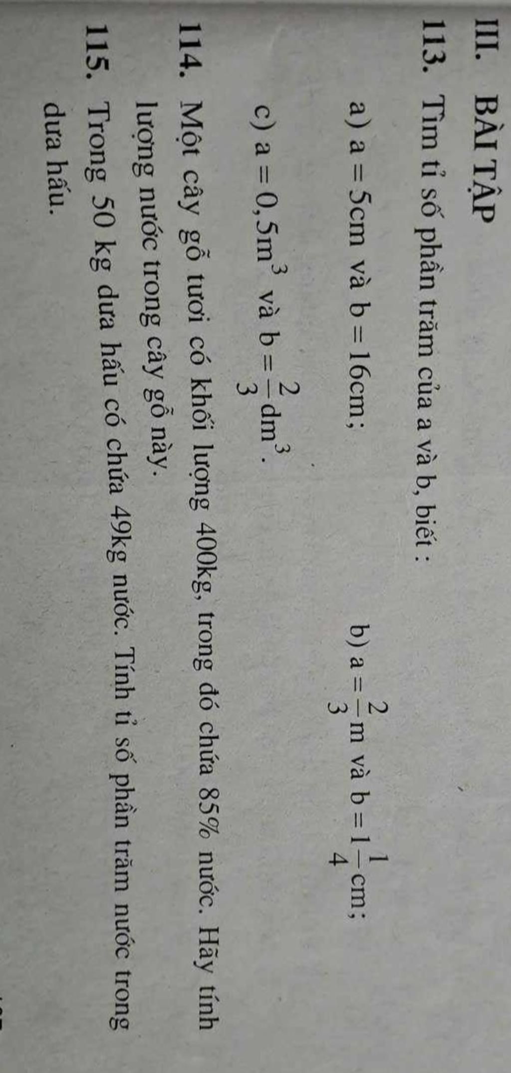 `114.` Lượng nước trong cây gỗ đó là `:`