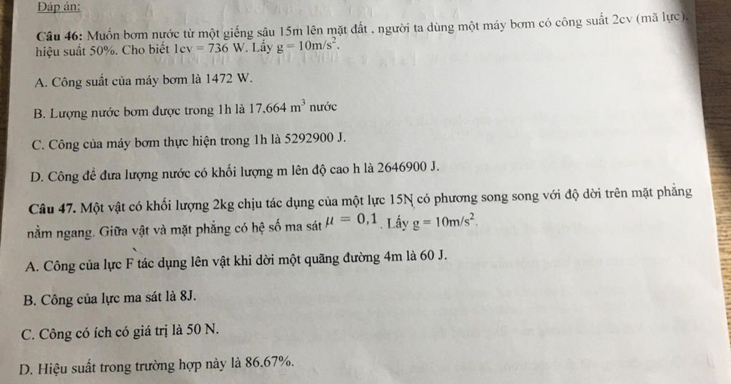 Công suất của máy bơm là: