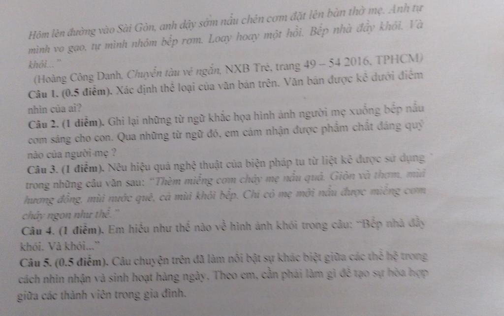 Câu 2. (1 điểm). Ghi lại những từ ngũ khắc họa hình ảnh người mẹ xuống bắn nẫu cơm sáng cho con. Qua những từ ngữ đó, em cảm nhận được phần chất dũng quy nào của người mẹ
