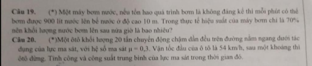 Lực ma sát: $\\$ `F_{ms} = \mu mg = 0,3 \times 20000 \times 9,8 = 58800` N
