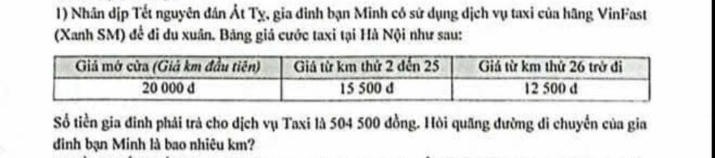Gọi quãng đường gia đình bạn Minh di chuyển là $x$ km
