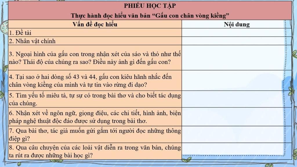 Thực hành đọc hiểu văn bản “Gấu con chân vòng kiềng”