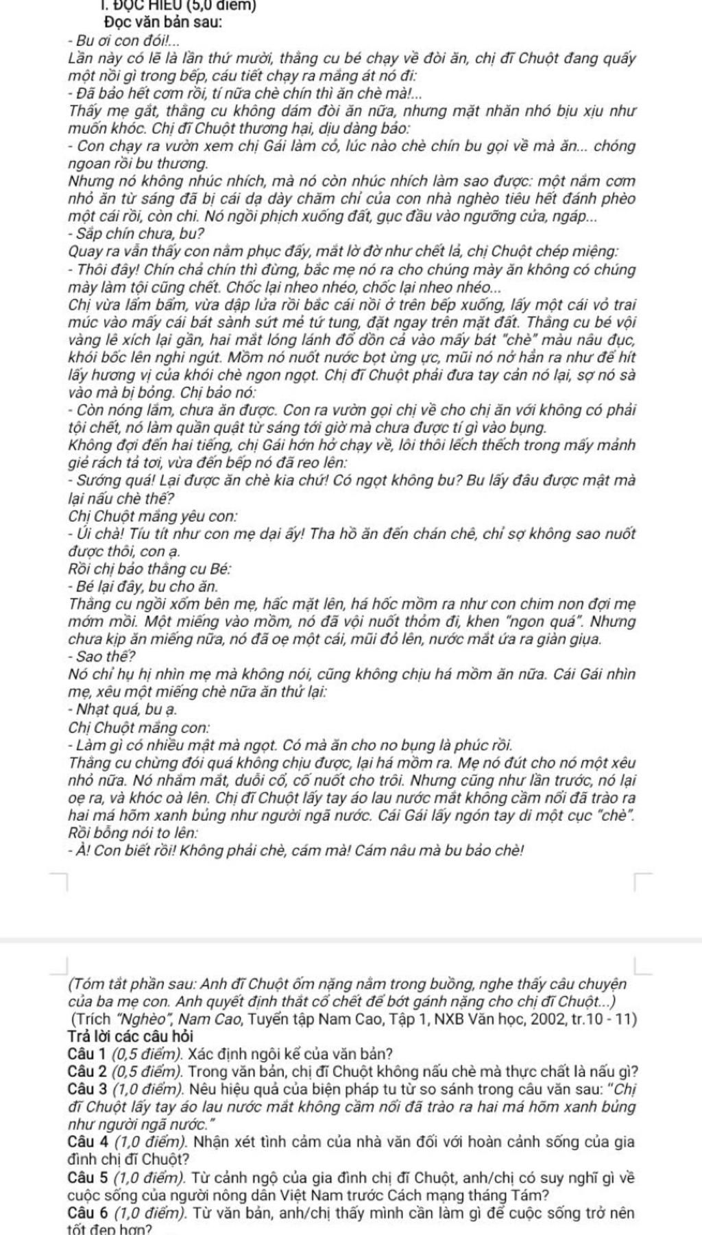 Qua cảnh ngộ của gia đình chị Dì Chuột, có thể nhận xét về cuộc sống của người nghèo Việt Nam thời kỳ trước Cách mạng tháng Tám: