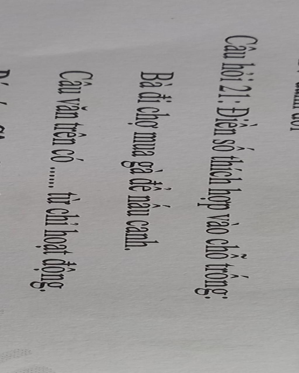 `-` Câu văn trên có `3` từ chỉ hoạt động. Đó là: đi, mua, nấu.