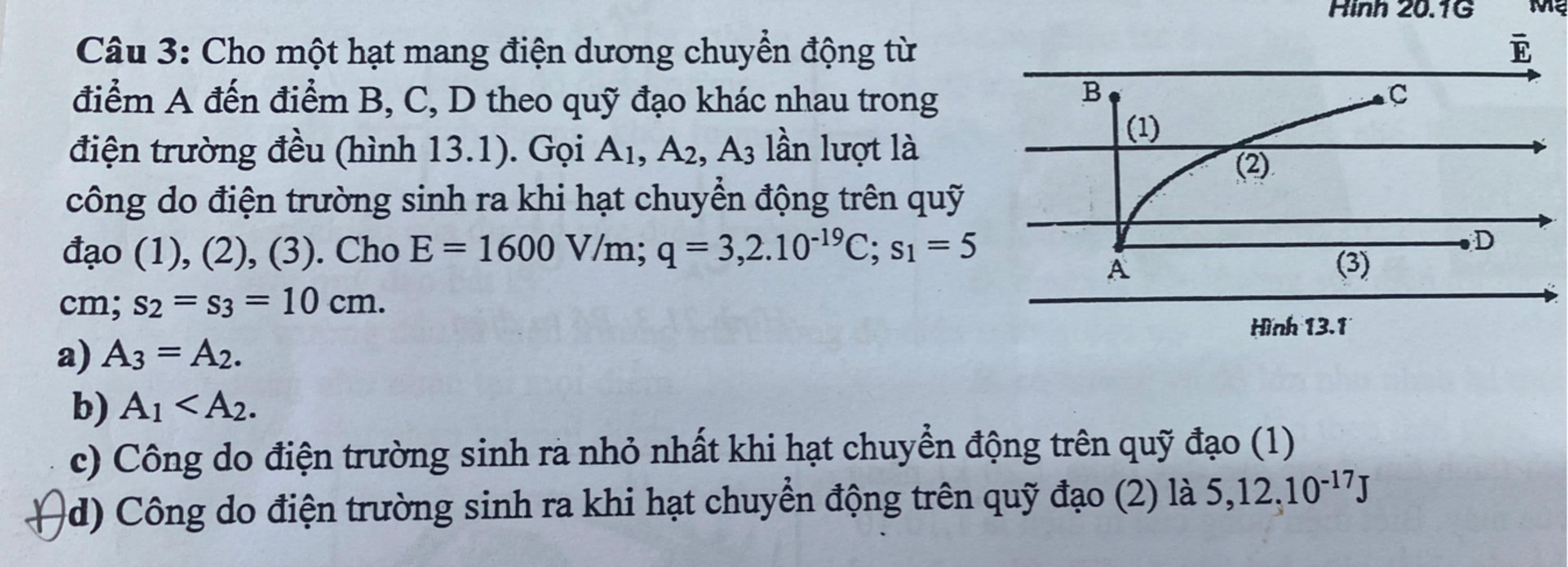 Có `A_3 = q E. AD = qEs_3 = 3,2.10^[-19] . 1600. 10.10^[-2] = 5,12.10^[-17] (J)`