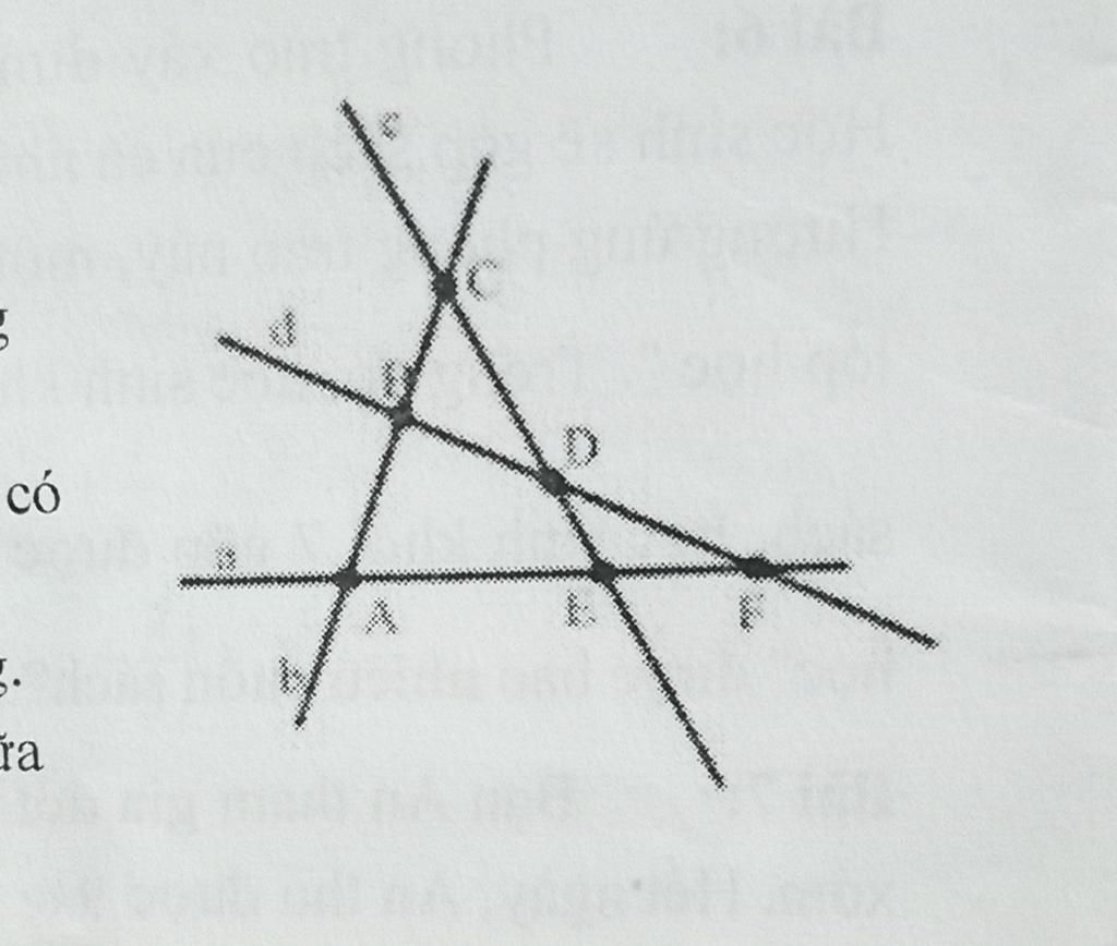 `c,` Có 4 đường thẳng trên hình vẽ : a,b,c,d và mỗi đường thẳng có `3` cách gọi