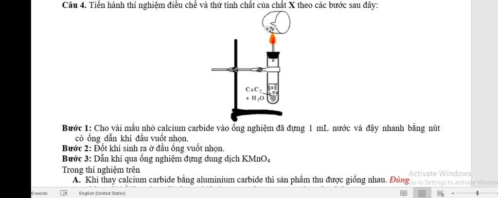 Khi thay calcium carbide bằng aluminium carbide thì sản phẩm thu được khác nhau: