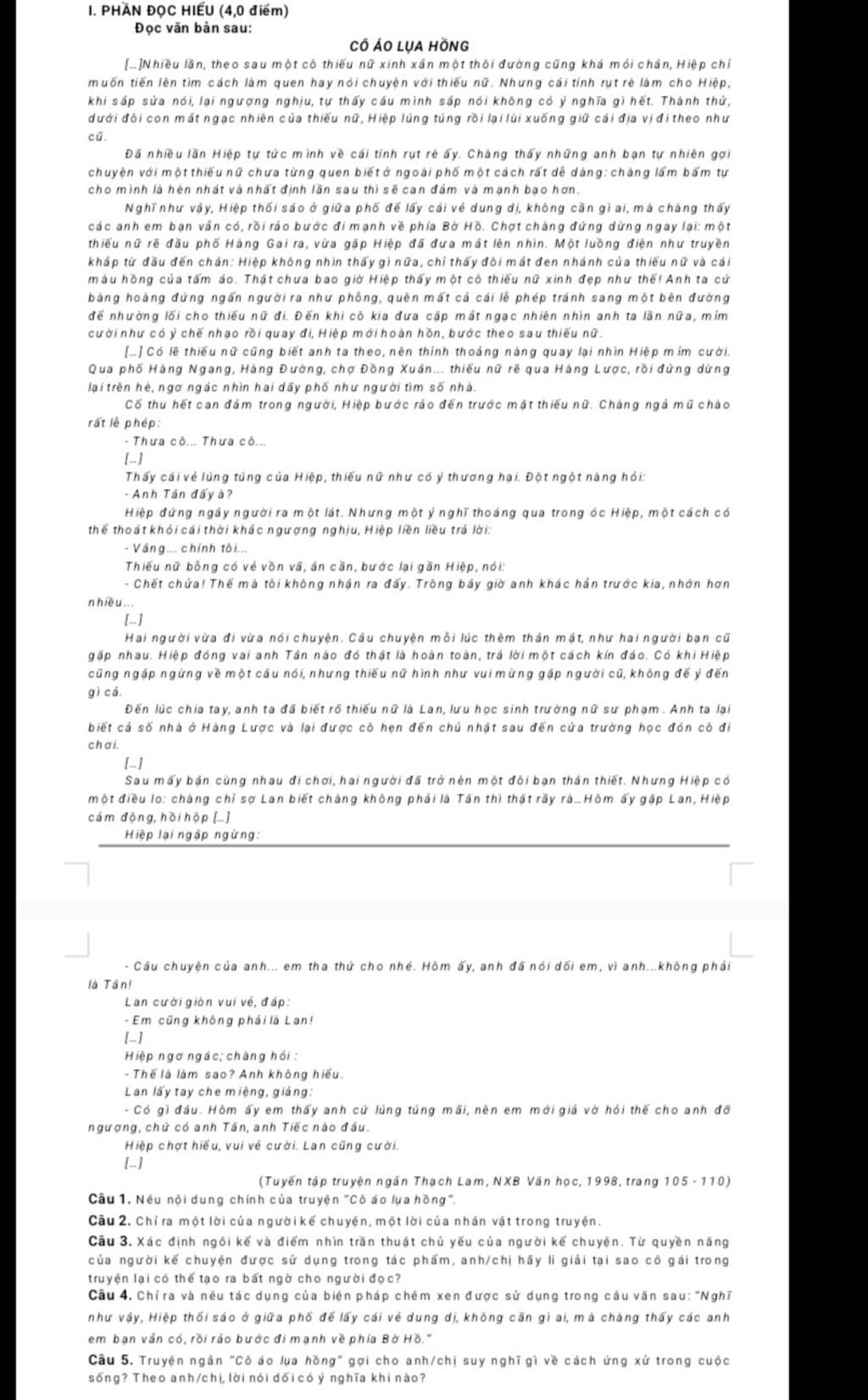 I. PHẦN ĐỌC HIỂU (4,0 điểm)