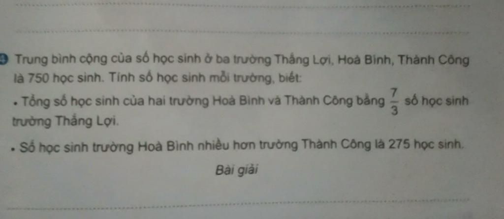 Tổng số học sinh trường Hòa Bình và trường Thành Công là :