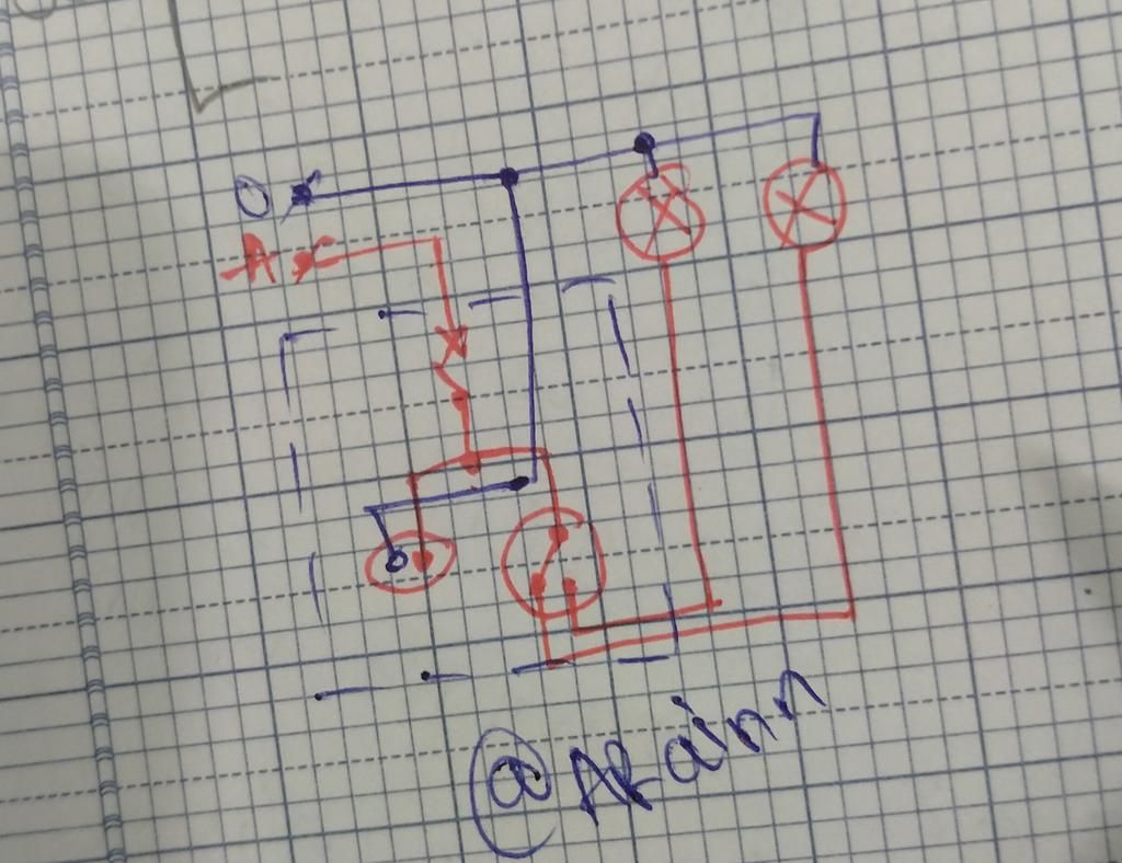 - 2 bóng đèn sợi đốt được điều khiển sáng luân phiên từ một công tắc 2 cực.
