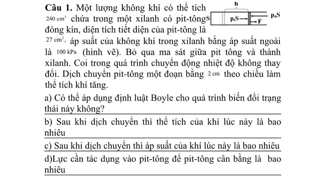 a) Do nhiệt độ không đổi nên có thể áp dụng định luật Boyle