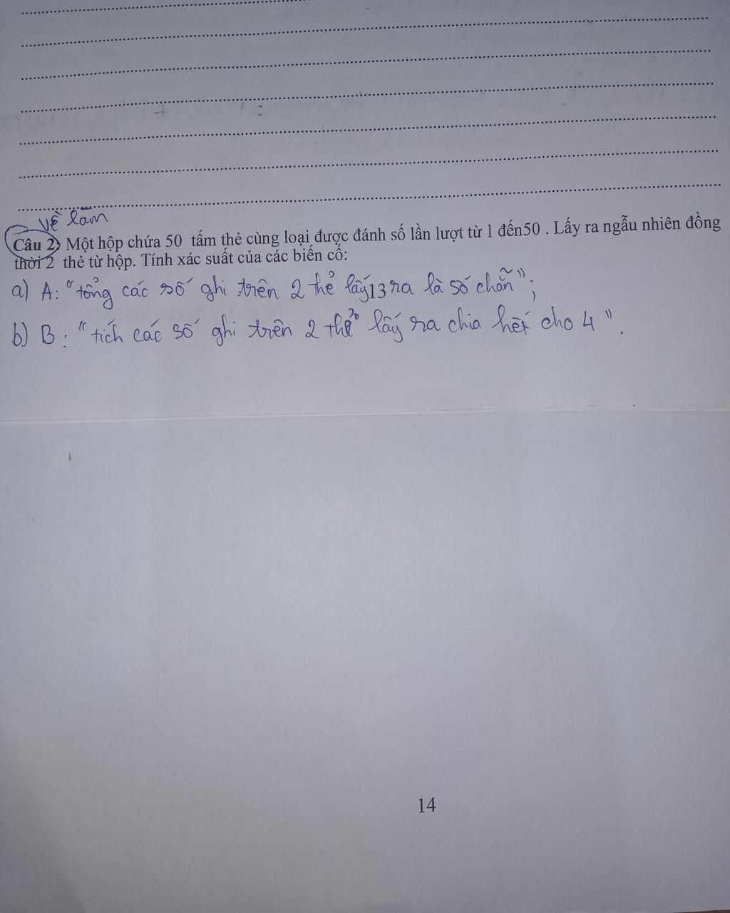 `a)` Từ 1 đến 50 có 25 tấm thẻ lẻ (đánh số 1;3;5;...;49) và 25 tấm thẻ chẵn (đánh số 2;4;6;8;..;50)