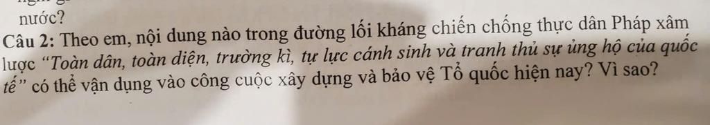 - Đường lối kháng chiến toàn dân là đường lối quyết định thắng lợi của cuộc kháng chiến chống thực dân Pháp.