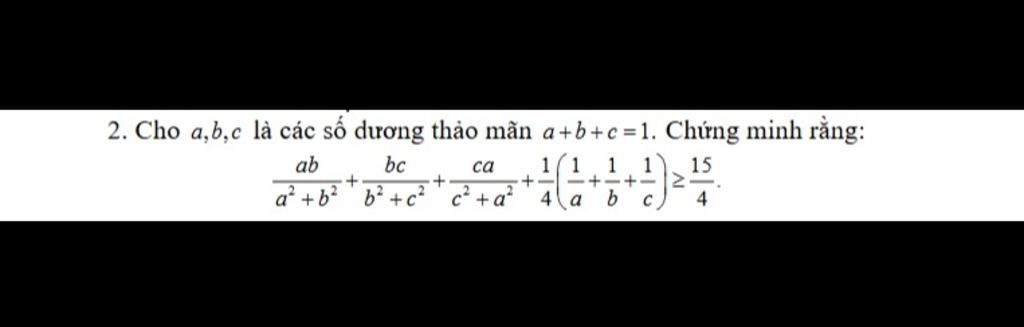 Do đó ta chỉ ra `: (9abc)/(ab + bc+ ca - 3abc) + 1/4 (1/a + 1/b + 1/c) >= (15)/4`