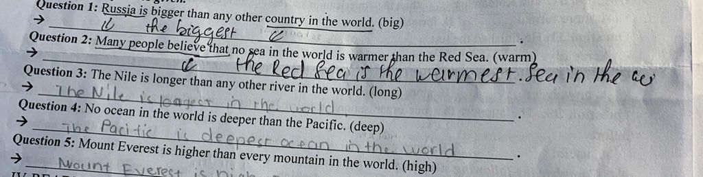`5` Moun Everest is the highest mountain in the world.