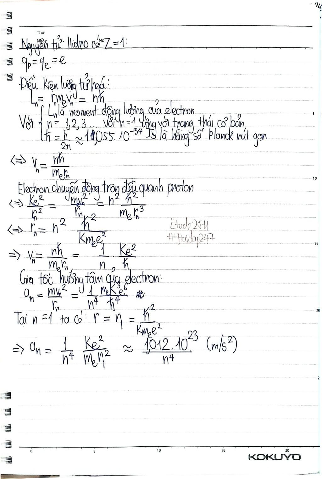 Mô hình cấu tạo của nguyên tử hiđrô được đề ra vào đầu thế kỷ XX bởi Niels Bohr như sau: nguyên tử gồm hạt nhân là một proton mang điện tích qp = 1,6.10^-19 C và một electron mang điện tích tích qe = -1,6.10^-19 C chuyển động tròn đều quanh hạt nhân. Ở trạng thái cơ bản, bán kính quỹ đạo của electron là r = 0,5.10^-10 m. Khi nguyên tử hiđrô nhận năng lượng kích thích, electron sẽ chuyển sang một quỹ đạo mới ở xa hạt nhân hơn. Biết khối lượng của electron me = 9,1.10^-31 kg, khối lượng của proton lớn hơn rất nhiều so với khối lượng của electron. Tìm gia tốc hướng tâm của electron khi chuyển động tròn đều quanh hạt nhân.