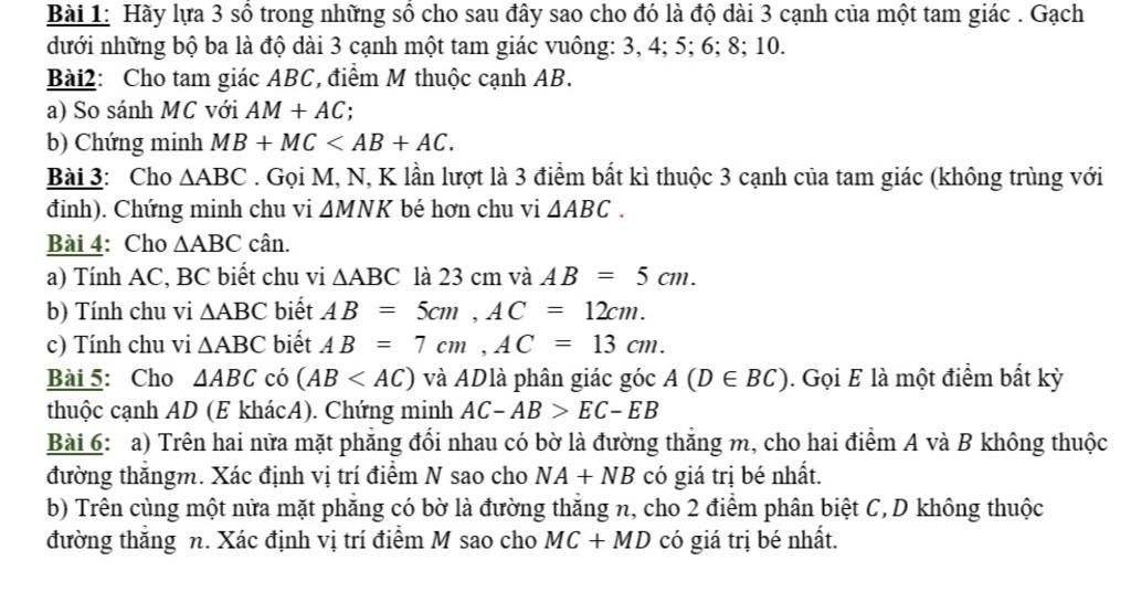 Ta có bất đẳng thức trong t/g: 2 cạnh trong 1 t/g luôn > cạnh còn lại
