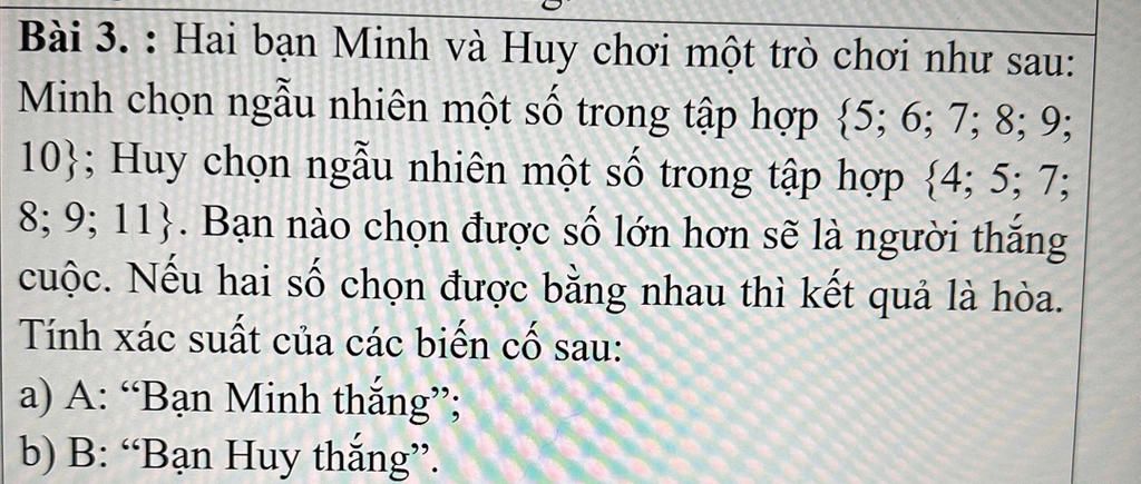 Bài 3. : Hai bạn Minh và Huy chơi một trò chơi như sau: