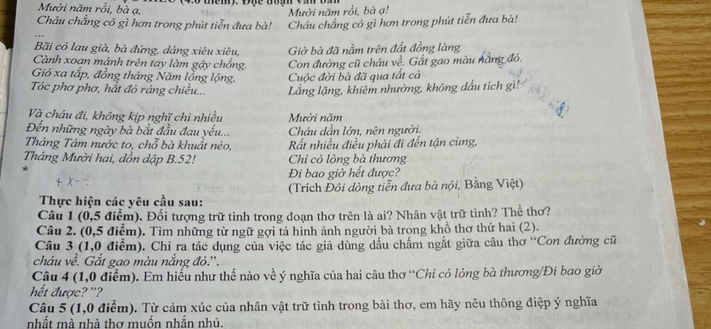 `+`Nhân vật trữ tình: Cháu `-` hay cũng có thể hiểu là chính tác giả Bằng Việt