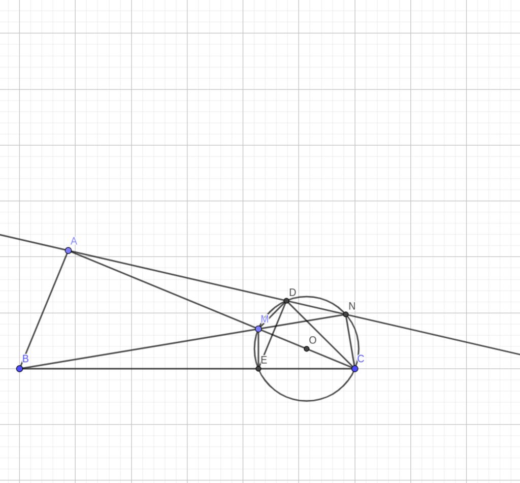 MC cắt BC tại E. Nối BM cắt đường tròn (O) tại N. Nối AN cắt đường tròn (O) tại D.