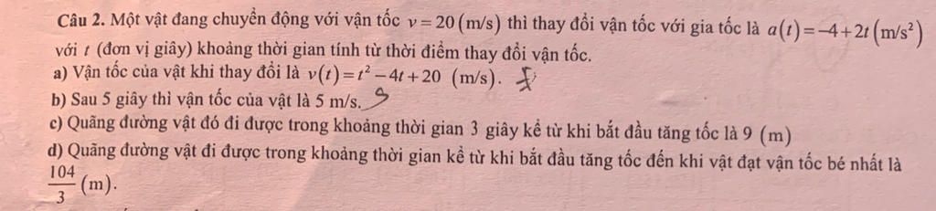 b.Sau $5$ giây vận tốc của vật là $v(5)=-4\cdot 5+5^2+20=25(m/s)$