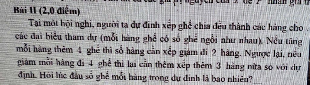 Gọi số ghế ban đầu ở mỗi hàng là x ( ghế , x∈ N*)