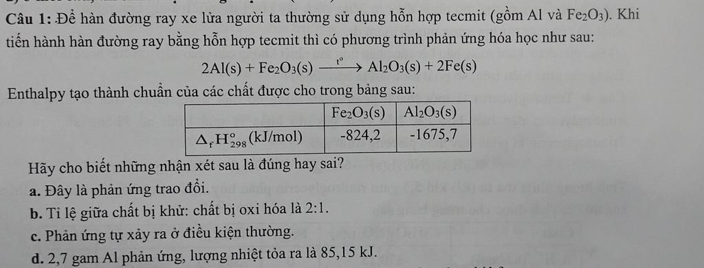 c) sai, cần cung cấp nhiệt độ cao để khơi mào cho phản ứng